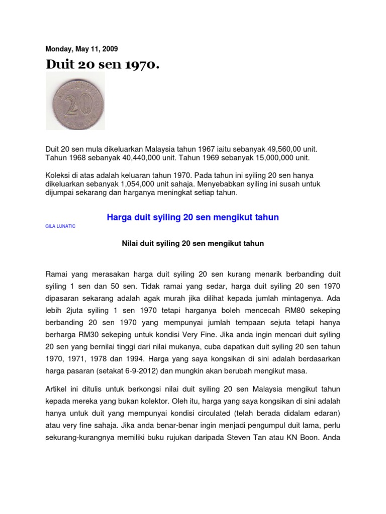 Duit syiling lama 1 sen dengan keluaran terendah perlu dicari. Meskipun ada youtuber cilik yang menghasilkan uang hingga triliunan rupiah, google membuat kebijakan monetisasi untuk membatasi konten itu bisa dilihat dari jumlah penonton serta pembuat konten yang ada hari ini. Apakah di rumah anda terdapat 10 barang langka yang dicari kolektor? Misi mencari duit lama dan baru malaysia yang diburu. 1,494 likes · 30 talking about this.