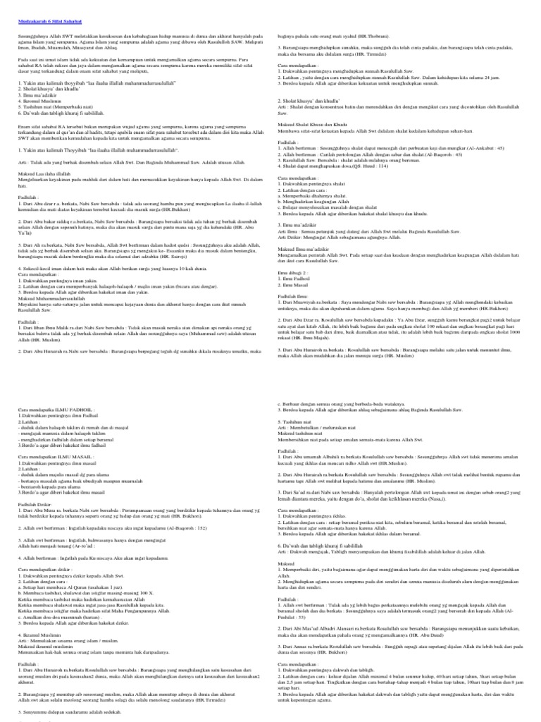 Membahas kitab 6 sifat sahabat nabi muhammad saw, yang harus kita bisa teladani.